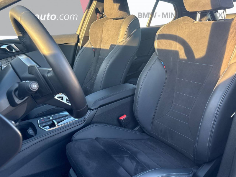 2 porte-gobelets sur la console centrale / 2 ports usb type c dans la console centrale + 2 à l'ar / 3ème feu stop à led sur la lunette ar / accoudoir central av avec compartiment de rangement / active guard - avertissement de sortie de voie - avertissement de collision frontale avec intervention sur les freins - avertissement de virage à gauche (véhicule) avec fonction de freinage - indicateur de limitation de vitesse - assistant d'évitement / airbags de tête av et aux places latérales ar / alarme antivol / appel d'urgence intelligent (durée de vie de la voiture) appel automatique vers le centre d'assistance bmw en cas d'accident. touche sos pour appel d'urgence manuel. les données importantes sont automatiquement transmises aux secours : identification et localisation de la voiture, nombre de passagers à bord, statuts des airbags. ce service utilise la carte sim montée d'usine et ne requiert pas l'utilisation du smartphone. / appuis-tête et ceintures de sécurité 3 points à toutes les places / bmw curved display / bmw intelligent personal assistant / bmw live cockpit navigation plus / bmw "my modes" (personal/ efficient/ sport) / boîte de vitesses automatique avec palettes à double embrayage dkg7 à 7 rapports / calandre avec encadrement en chrome et barreaux verticaux / diagonaux / capteurs d'impact - activation de l'airbag, des feux de détresse, de l'éclairage intérieur - déverrouillage des portes et légère ouverture des vitres / ciel de pavillon m anthracite / compartiment à bagages : 2 crochets de sac, filet sur panneau droit / contrôle de stabilité dynamique (dsc) avec dotation élargie - assistant de démarrage en côte - assistant dynamique de motricité (dtc) / désignation du modèle à droite du hayon / détecteur d'accident (crash sensor) - allume les feux de détresse - déverouillage des portes / détecteur de pluie et allumage automatique des projecteurs / déverrouillage électrique du coffre via la volet de coffre ou la clé radiocommandée / driving assistant - avertisseur de franchissement de ligne (>70km/h avec vibrations dans le volant) - avertisseur d'angle mort (>20km/h avec voyant d'alerte) - avertisseur de risque de collision av (>15km/h, préconditionnment du freinage >50km/h, assistance au freinage) - avertisseur de risque de collision ar (déclenchement automatique des warning) - avertisseur de trafic transversal ar (avertisseur en cas de circulation transversale détectée derrière la voiture) / eclairage de bienvenue autour du véhicule / eclairage de plaque d'immatriculation à led / eclairage intérieur - lampes de courtoisie - eclairage habitacle av et ar, y compris éclairage d'ambiance - eclairage coffre à bagages sur le coté droit - eclairage intérieur du compartiement de rangement dans l'accoudoir central - lampes de lecture à l'av et à l'ar - eclairage plancher av et ar / eléments extérieurs m sport / eléments extérieurs (poignées de portes, baguettes de pare-chocs et de toit) couleur carrosserie / eléments intérieurs m sport / fonction start&stop avec système prédictif via la navigation / inserts décoratifs aluminium graphite illuminés / jantes en alliage léger 18" style 975 m, à rayons doubles, bicolores midnight grey 8 j x 18 / pneus 225/45 r18.comprennent écrous de roues antivol. montage chaînes à neige impossible. / kit de mobilité bmw bouteille de mastic pour pneumatiques - compresseur électrique 12 v (connexion à une prise 12v) / mesure individuelle de pression des pneumatiques avec 3 niveaux / moteur twinpower turbo essence 3 cylindres -turbocompresseur - valvetronic (modification de la profondeur d'ouverture des soupapes d'admission) - double vanos (système de distribution variable) - technologie bmw high precision injection - filtre à particules / parking assistant - caméra de recul - manoeuvres de stationnemment automatique en créneau et en bataille - freinage automatique (pdc actif) en marche ar - assistant de marche ar/auto-reverse / personal esim personal esim est la version électronique, intégrée au véhicule, de la carte sim traditionnelle. vous l'utilisez via un abonnement souscrit auprès d'un opérateur téléphonique et transformez ainsi votre bmw en périphérique mobile supplémentaire : - la bmw sera ajoutée au contrat du téléphone mobile du client en tant qu'appareil supplémentaire - connectivité 5g - les appels téléphoniques ou les connexions de données ne nécessitent pas la présence physique du téléphone portable privé / prise 12 v dans la console centrale / régulateur de vitesse avec fonction de freinage dans les descentes / régulateur de vitesse avec fonction de freinage et limiteur de vitesse / rétroviseurs extérieurs couleur carrosserie avec rappels de clignotants intégrés / sellerie alcantara / similicuir veganza schwarz avec surpiqûres bleues / services après-vente connectés bmw teleservices (durée de vie de la voiture) / shadow line m brillant entourage des vitres latérales, les baguettes de bas de glace, les montants centraux ainsi que les pourtours, pieds et triangles des rétroviseurs extérieurs en noir brillant / sorties d'échappement non visibles / suspension adaptive m / système de détection de somnolence / système hi-fi 6 hp / tapis de sol anthracite / teinte de carrosserie unie / triangle de présignalisation avec kit de premiers secours / volant m gainé cuir (avec surpiqûres noires) trois branches. jante en cuir noir 'walknappa', inserts chrome perlé et repose-pouce dans le volant. logo m sur la base du volant