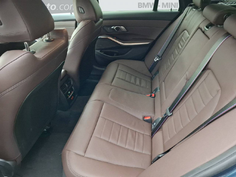 2 portes-gobelets sur la console centrale / 3ème feu stop sur la lunette ar / 5 places / abs, y compris assistant de freinage / active guard plus avertissement de collision frontale avec intervention de freinage grâce à un radar et à une caméra (entre 5 km/h et 250 km/h) - avertissement de chauvechement de ligne avec impulsion sur la direction - assistance de limitation de vitesse avec informations de limite de vitesse / airbags de tête à l'av et aux places latérales ar / alarme antivol surveillance des portes, coffre et capot moteur, protection de l'habitacle, détecteur de soulèvement et sirène. / appel d'urgence intelligent (durée de vie de la voiture) appel automatique vers le centre d'assistance bmw en cas d'accident. touche sos pour appel d'urgence manuel. les données importantes sont automatiquement transmises aux secours : identification et localisation de la voiture, nombre de passagers à bord, statuts des airbags. ce service utilise la carte sim montée d'usine et ne requiert pas l'utilisation du smartphone. / apps véhicule (3 ans) applications intégrées au véhicule permettant notamment la réception des données suivantes : actualités (podcasts "news next"), prévisions météo, guide de voyage (infos légales par pays), infos prix des carburants. inscription via l'application pour smartphone my bmw. achat et renouvellement du service possible sur le bmw shop. ce service utilise la carte sim montée d'usine. usage illimité sans surcoût pendant la durée de l'abonnement. / bmw curved display / bmw efficientdynamics direction à assistance électrique servotronic, fonction d'arrêt et de redémarrage automatique du moteur, système de récupération de l'énergie au freinage, technologie bmw twinpower turbo avec injection directe / bmw live cockpit navigation plus dalle numérique bmw curved display de 12,3'' derrière le volant et 14,9'' au dessus de la console centrale, bmw intelligent personal assistant, fonctions intelligentes (3 ans), remote software upgrade (durée illimitée) / boîte de vitesses automatique sport 8 rapports avec palettes au volant, mode roue libre au ralenti et launch control. / capacité du reservoir augmentée réservoir de carburant : 59 litres, réservoir ad-blue : 18,9 litres / carte sim 4g lte pour les services connecteddrive / ceintures de sécurité 3 points à toutes les places / ciel de pavillon m anthracite / clés radiocommandées à mémorisation automatique des réglages "personal profile" / commande électrique du volet de coffre ouverture du volet de coffre, à distance via la clé radiocommandée; fermeture via la clé ou le bouton situé sur le volet de coffre. / connexion multiple de téléphones / contrôle de freinage en courbe cbc / contrôle dynamique de la traction (dtc) et contrôle dynamique de stabilité (dsc) / controller idrive avec touches de raccourci / désignation du modèle sur la malle à gauche / détecteur de pluie et allumage automatique des projecteurs / direction directdrive à démultiplication variable crémaillère à pas variable en fonction du braquage de volant pour un effort de braquage moindre. facilite les manoeuvres à basse vitesse et la réactivité en conduite dynamique. / eclairage d'accueil / eclairage d'ambiance eclairage lumineux à l'aide de 11 programmes prédéfinis dans 6 différents coloris (orange, vert, bleu, lilas, bronze et blanc) du tableau de bord, des panneaux de portes et de la console centrale.comprend également les liseuses ar, l'éclairage du rangement de l'accoudoir central av et poignées d'ouverture de porte intérieure et extérieure ainsi qu'un éclairage de bienvenue avec tapis de lumière au porte av gauche et droite. / eclairage dans le coffre et la boîte à gants / ecrous de roues antivol / eléments extérieurs (poignées de porte, baguettes de toit) couleur carrosserie / feux de croisement et feux de route à technologie led / feux de jour et clignotants av/ar à led / feux de route anti-éblouissement - fonction à la demande possibilité de post-équiper le véhicule de la fonctionnalité« feux de route anti-éblouissement » via le bmw shop. / filet de séparation du coffre / fonctionnalité "follow me home" (éclairage d'accompagnement) : les feux de croisement restent allumés quelques instants une fois le contact coupé / frein de parking électromécanique avec fonction auto-hold / freins m sport etriers de freins bleus avec désignation m à l'av. essieu av: étriers fixes à quatre pistons en aluminium léger / essieu ar: étriers flottants à piston unique pour une sentation de pédale de frein plus sportive. stabilité thermique accrue. / hybridation légère (48v) l'hybridation légère sert à récupérer l'énergie cinétique produite lors les phases de freinage et vient en support du moteur à combustion durant les phases d'accélération. cette technologie réduit la consommation de carburant et les émissions tout en conférant davantage de dynamisme. l'hybridation légère permet également à la technologie start/stop de fonctionner de manière plus rapide et plus douce. / inserts décoratifs m aluminium rhombicle anthracite / jantes en alliage léger 18" style 848 m bicolores à rayons doubles avec pneumatiques mixtes av: 7,5jx18 / pneus 225/45 r18, ar: 8,5jx18 / pneus 255/40 r18, comprend les écrous de roues antivol. / kit éclairage / kit rangement bac de rangement dans les portes av et ar, prise 12 v dans la console centrale et dans le coffre à bagages, filets dans le coffre à bagages, à gauche et à droite, crochets d'arrimage multifonction dans le coffre à bagages. / lève-vitres av/ar électriques avec commande par impulsion et sécurité enfants / mesure individuelle de pression des pneumatiques / norme gsr 2 (general safety regulation) / notice d'utilisation de la voiture intégrée et carnet d'entretien électronique avec bmw service history / ordinateur de bord, check-control et indicateur de température extérieu
