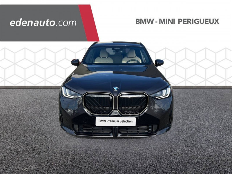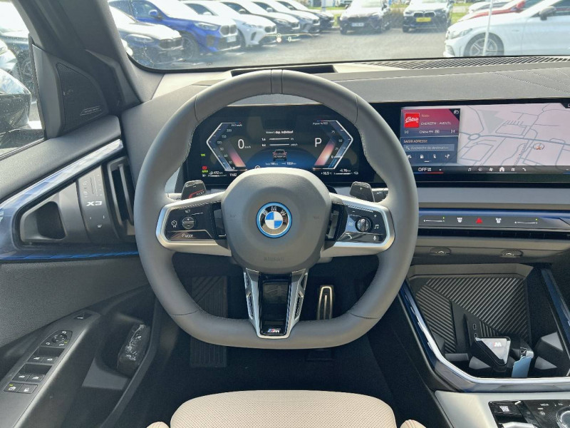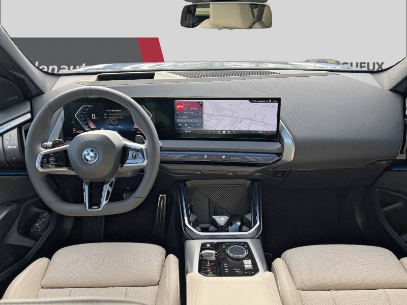 2 porte-gobelets sur la console centrale / 3ème feu stop led intégré au hayon ar / 5 places / accès confort avec préparation "bmw digital key plus" - ouverture et fermeture (des 4 portes et de la malle) et démarrage sans clé - eclairage d'accueil lorsque le conducteur se situe à 2,5 m du véhicule - déverrouillage automatique à partir de 0,5 m du véhicule - verrouillage automatique lorsque le conducteur s'éloigne du véhicule, à partir de 3 m / accoudoir central av avec panneau de commande intégré / active guard avertissement de franchissement de ligne avec impulsion sur la direction (>70km/h), avertisseur de collision frontale avec intervention de freinage (3-210km/h), avertisseur d'intersection (détection risque collision latérale 3-85km/h), avertisseur présence piéton/cycliste lors d'un virage en intersection (3-35km/h), assistance de limitation de vitesse avec informations de limite de vitesse. / airbag central (siège conducteur) / airbag entre les deux sièges av en cas de collision latérale / airbags de tête av et aux places latérales ar / alarme antivol surveillance des portes, coffre et capot moteur, protection de l'habitacle, détecteur de soulèvement et sirène. / appel d'urgence intelligent (durée de vie de la voiture) appel automatique vers le centre d'assistance bmw en cas d'accident. touche sos pour appel d'urgence manuel. les données importantes sont automatiquement transmises aux secours : identification et localisation de la voiture, nombre de passagers à bord, statuts des airbags. ce service utilise la carte sim montée d'usine et ne requiert pas l'utilisation du smartphone. / bmw digital (bmw maps, rtti sur itinéraire, apple carplay, android auto, bmw intelligent personal assistant) / bmw efficientdynamics direction à assistance électrique servotronic (assistance variable selon la vitesse), fonction d'arrêt et de redémarrage automatique du moteur, système de récupération de l'énergie au freinage. / bmw iconicsounds electric mise en scène du son de conduite électrique à l'intérieur et à l'extérieur du véhicule. sélection du niveau via les modes du commutateur d'expérience de conduite personnalisée: personal : confort acoustique modéré avec faible réponse de charge, sport : nette réponse de charge, efficient : confort acoustique élevé sans mise en scène supplémentaire, expressive : acoustique de conduite d'avant-garde - une réinterprétation artistique du mouvement, relax : paysage sonore vibrant et relaxant. / bmw live cockpit navigation plus avec Écran bmw curved display nouveau système d'exploitation bmw operating system 9 avec widgets variables configurables qui affichent des informations en temps réel, remote software upgrade : mise à jour du logiciel de la bmw à distance, connectivité 4g lte, mise à jour pour les données de carte de navigation over the air (ota), bmw maps : nouveau système de navigation, simplification de la recherche, calcul plus rapide, navigation apprenante. / bmw xdrive transmission intégrale permanente avec répartition variable du couple, inclus fonctionnalité dsc étendue pour la répartition de la motricité. / boîte de vitesses automatique à 8 rapports avec palettes au volant boîte de vitesses automatique à 8 rapports avec sélecteur électronique et palettes au volant. / câble de recharge professionnel mode 3 (t2-t2) pour la recharge publique - 5 mètres câble de recharge professionnel de mode 3 triphasé avec prises type 2 - type 2 destinéà la recharge sur bornes publiques ou privées. peut être utilisé sur une borne de recharge raccordée en courant monophasé ou triphasé avec des puissances de charge maximales : 7,4 kw / 32 a (en monophasé) et de 22 kw / 32 a (en triphasé). rangement dans le coffret à câbles sous le cache du compartiment à bagages. couleur gris basalte. / calandre avec barreaux droits et obliques / capteurs d'impact - activation de l'airbag, des feux de détresse, de l'éclairage intérieur - déverrouillage des portes - activation de la borne batterie de sécurité / ceintures de sécurité 3 points à toutes les places / chargeur courant alternatif ac 11 kw / ciel de pavillon m anthracite / clignotants led intégrés aux feux de jour / climatisation automatique 3 zones contrôle individuel de la température pour le conducteur et le passager av, programme automatique avec 5 niveaux d'intensité, fonction sync : les réglages du conducteur s'appliquent à toute la zone passagers, recirculation automatique de l'air (ssc), refroidissement maximal (max ac), pour le conducteur et le passager av, microfiltre à charbon, pré-refroidissement, aérateurs à l'ar dans la console centrale ar. / compartiment à bagages : 2 crochets de sac, filet sur panneau gauche, prise 12v rangement additionel (volume spécifique au modèle) sous plancher amovible / console centrale avec insert noir brillant / contrôle de stabilité dynamique (dsc) avec dotation élargie contrôle de freinage en courbe (cbc), contrôle dynamique des freins (dbc), stabilisation de remorque, assistant dynamique de motricité (dtc), freinage de séchage, assistant de démarrage en côte, abs - système anti blocage des roues. / désignation du modèle "x3" sur le hayon à gauche et version à droite / détecteur de pluie et allumage automatique des projecteurs / direction directdrive à démultiplication variable sportivité accrue sans affecter le confort d'utilisation au quotidien : virages directs et sportifs grâce à un angle de braquage réduit (cinématique et réglages de direction améliorés), faible effort de braquage à basse vitesse, par exemple lors du stationnement ou dans les manoeuvres, comportement de conduite intuitif et facile (retour d'information optimisé), adaptation des réglages en fonction des modes de conduite. / driving assistant plus - fonction à la demande / driving assistant regroupe de nombreuses technologies pour une sécurité optimale : avertis